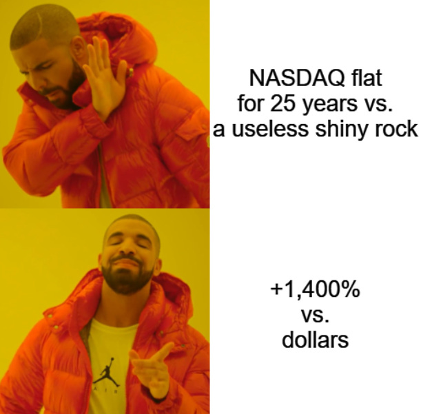 Despite this, the index best designed to capture value accretion from technology has produced no greater return than a shiny rock.